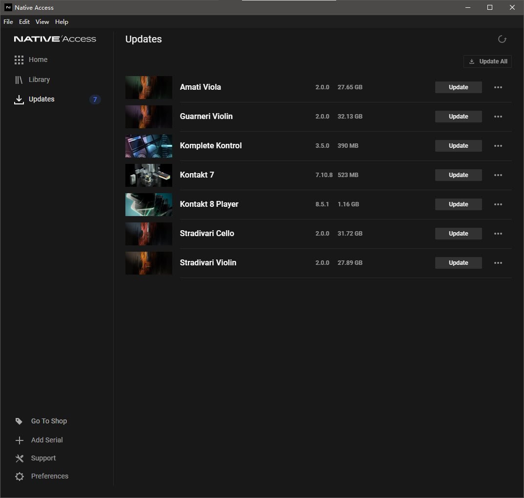 然而我在打开Native Access时,根本没扫出任何更新提示,不过我清楚这是NA一贯的问题了,它对于用户硬盘音色的扫描与版本核实要占用大量时间。