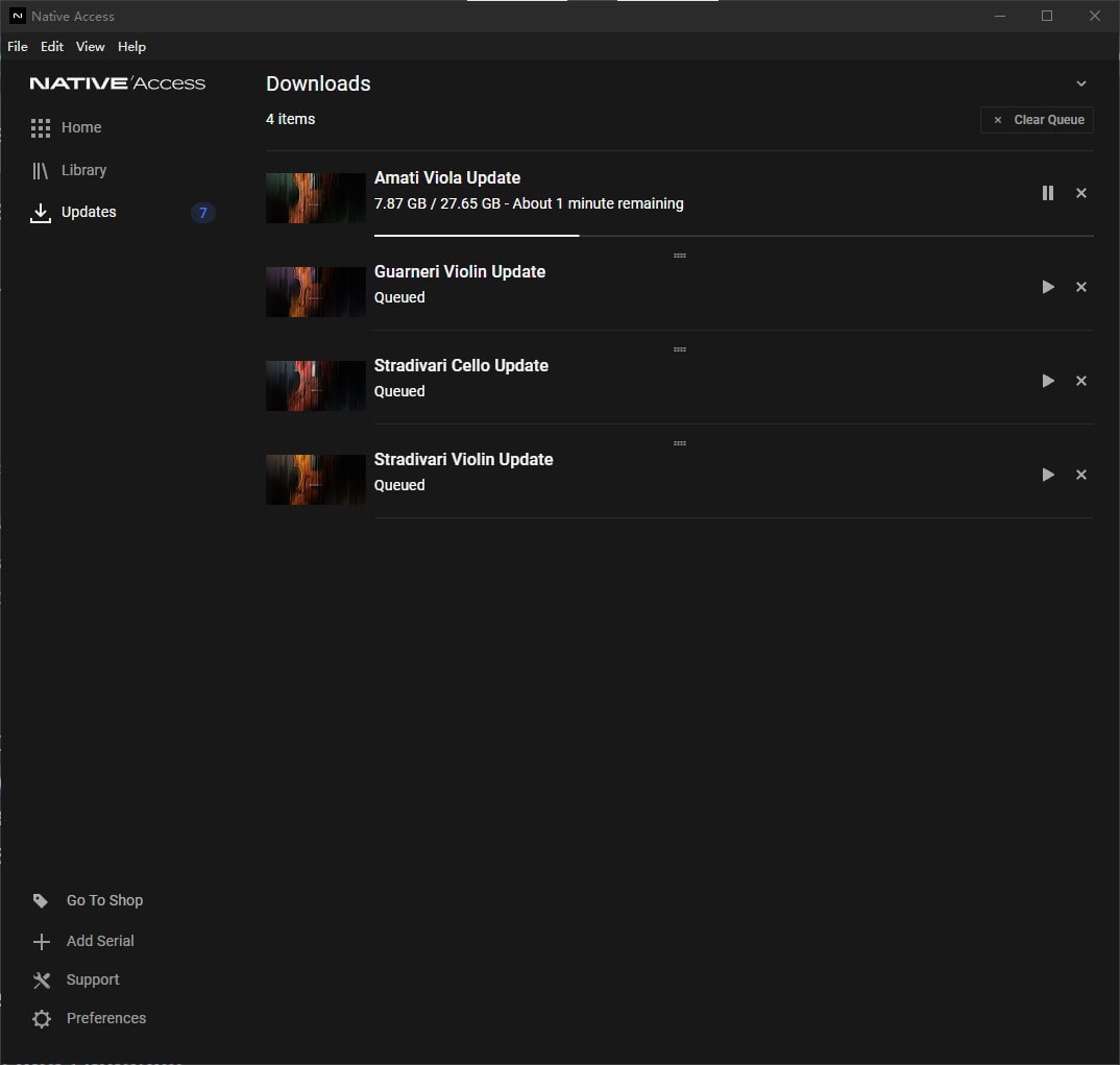 Cremona Quartet的更新终于刷出来了,虽然个个容量都非常巨大,像是要将整个音色库都重新下载一遍,但实际下载中发现,好像容量中的很多部分都是快速跳过的,应该只会下载那些欠缺的部分而已。因为在下载时,它没过几十秒就到了7.87G,然后剩余容量它表示大概只需要1分钟。