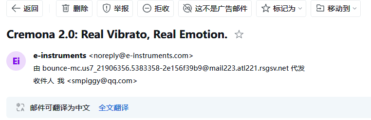 补充信息:就在发完此篇文章后一两个小时,我就又收到了e-instruments公司再次发来的邮件:Cremona 2.0:真实的颤音,真实的情感。而这封邮件对于Cremona 2.0的介绍就显得详实而有效,毕竟它内附一个直达链接。