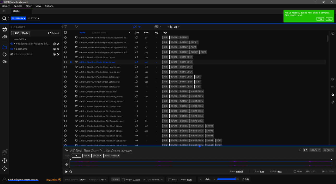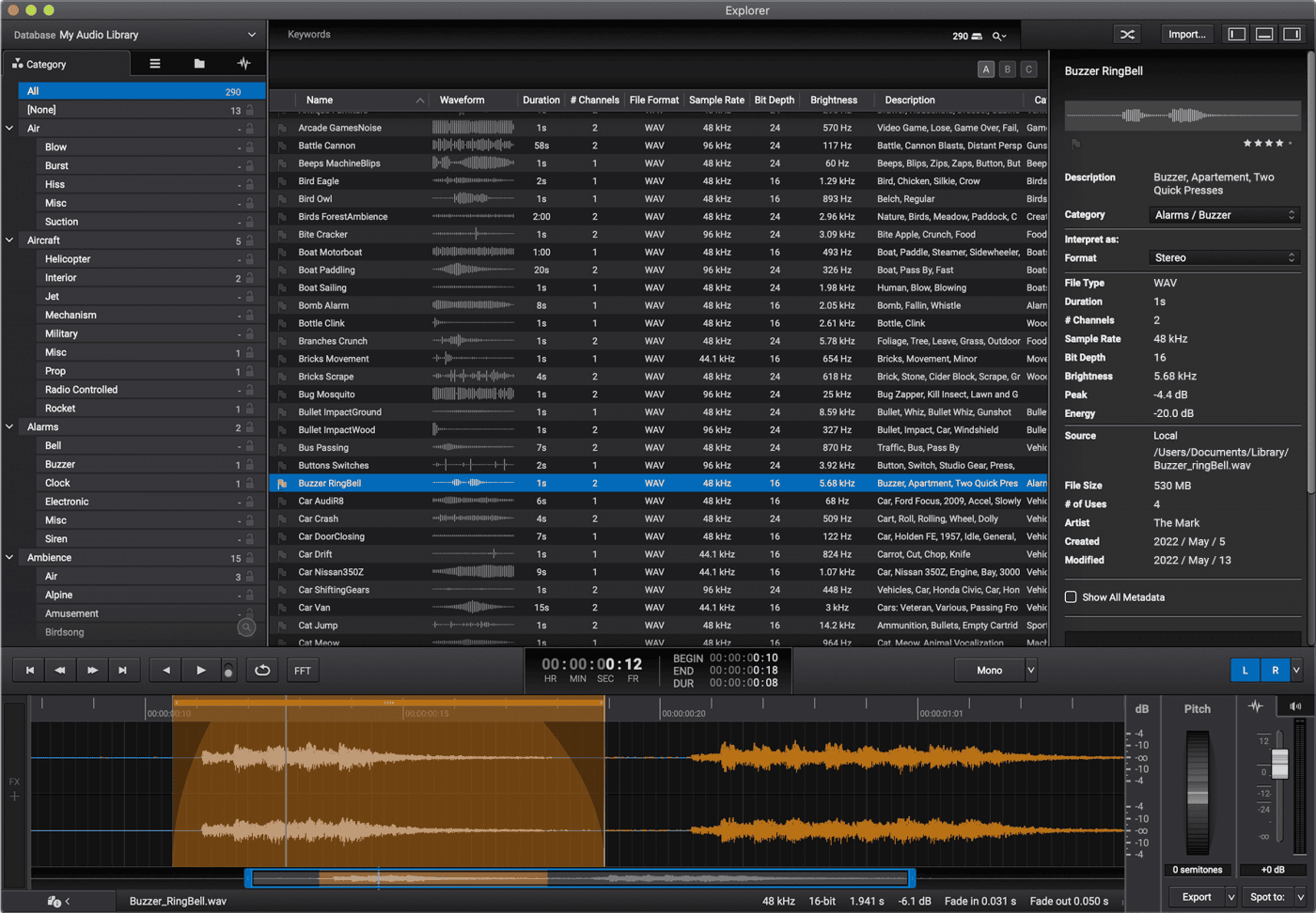 不过缺点是,它对于编辑文件标签尤其是为单一文件添加多个标签,有点无能为力。唉,就差那么一点。它还不支持对波形文件进行各种效果调节,也没有如Sononym那样的智能分析匹配功能,但反过来,这也加快了它管理音效的速度。毕竟它能直接拖放入DAW,就完全不需要考虑后续的效果处理问题。