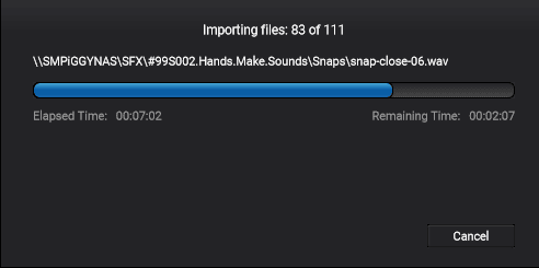 它支持无限的本地文件数量,这点看起来比较积极。但它在音效文件夹管理上有很大的缺陷,比如不能批量导入多个文件夹(必须一个一个的拖放),文件夹导入速度奇慢(如一个100多个音效的文件夹导入需要大概10分钟),这让我在首次使用时,就感受到了压力。
