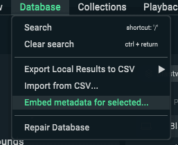 SoundQ使用的文件数据库,是并不伤害文件本身的,也就是说我们对文件添加的任何属性,都只是写入到SoundQ的内部数据,而不是写入到文件。但如果我们愿意,也可以编辑了文件的Metadata后,点击Database中的Embed metadata for…来将改写的数据写入文件本身。这个无伤与可选的功能,也能帮助我们决定是临时分类,还是永久性的改写。