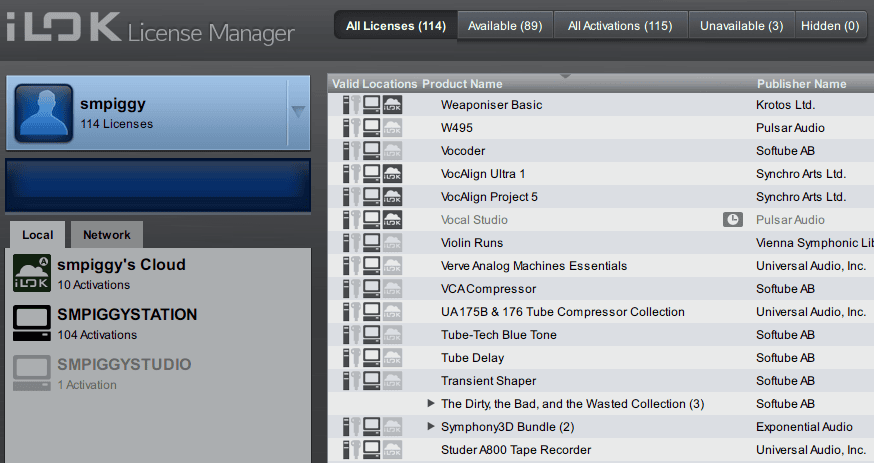 基于这个稳定运行的系统之上,我安装了 DAW,巨多巨多海量海量的软件与插件,这是重点。一一安装这些软件和插件,并保证它们一一稳定的运行,是个极其极其繁琐且耗时的事情。不光如此,很多正版软件会需要用到如 eLicenser 或 iLok 之类的加密狗,将软件与我当前硬件配置所生成的唯一设备码所绑定。未进行或错误的解绑,都将导致这些正版软件失效,甚至都得不到补偿。