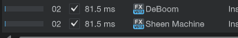 在免费获取了 DeBoom 和 Sheen 后,我简单的试用了一下。我用了一段 ADD 的鼓循环,然后加载了这两个插件。DeBoom 主要用于去掉鼓的中频和低频,Sheen 主要用于添加高频亮度。作用都有,但也都很克制,是一个很容易应用的幅度。