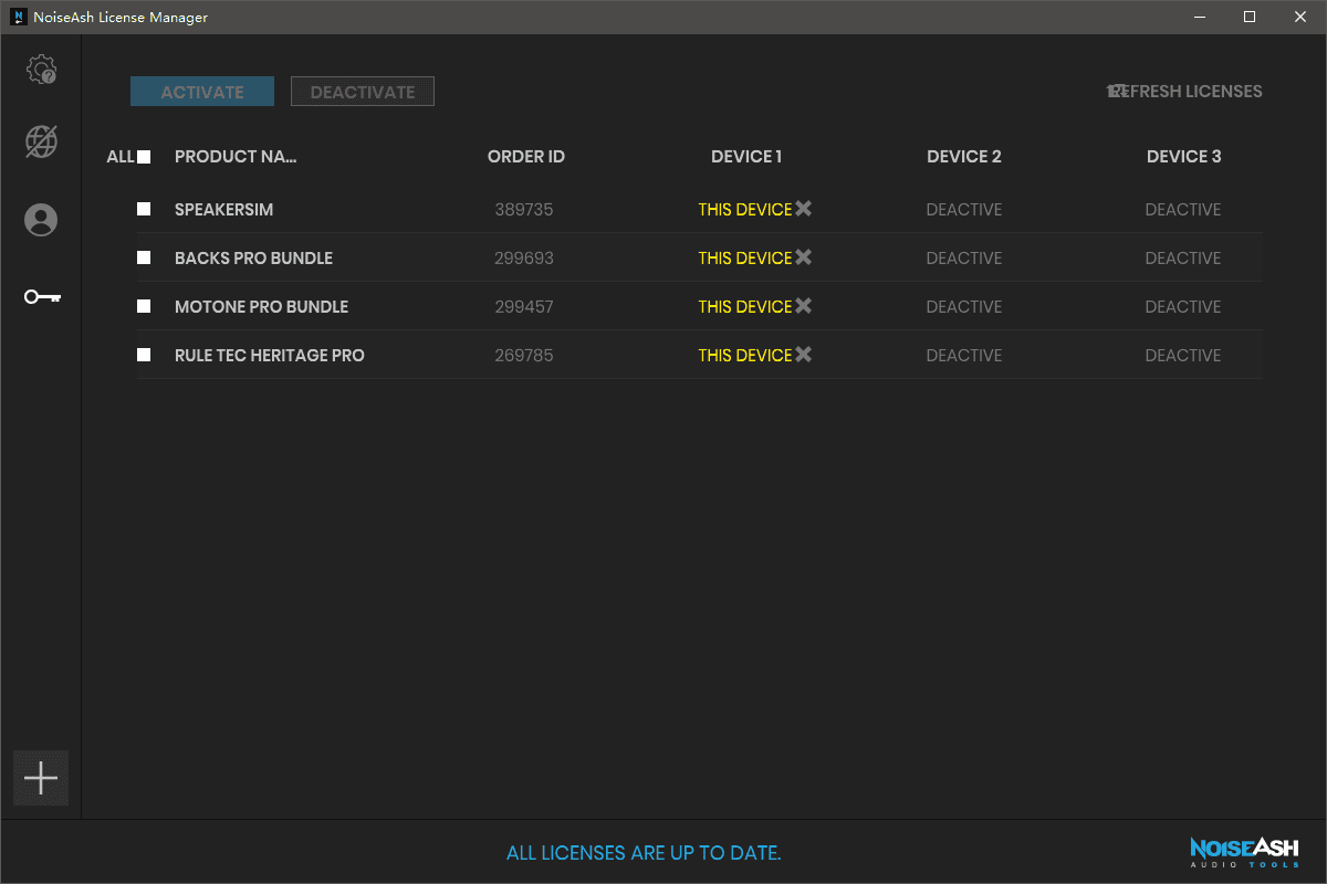 然而,就在我试图去官网下载这个最新的更新版时,居然无处寻获下载。所有的 Backs Collection 下载链接都依然是旧版的 1.2.4 版,我又试图用 NoiseAsh 的 License Manager,在里面它也告诉我,我的所有插件都是最新版,也未提示我需要更新什么。