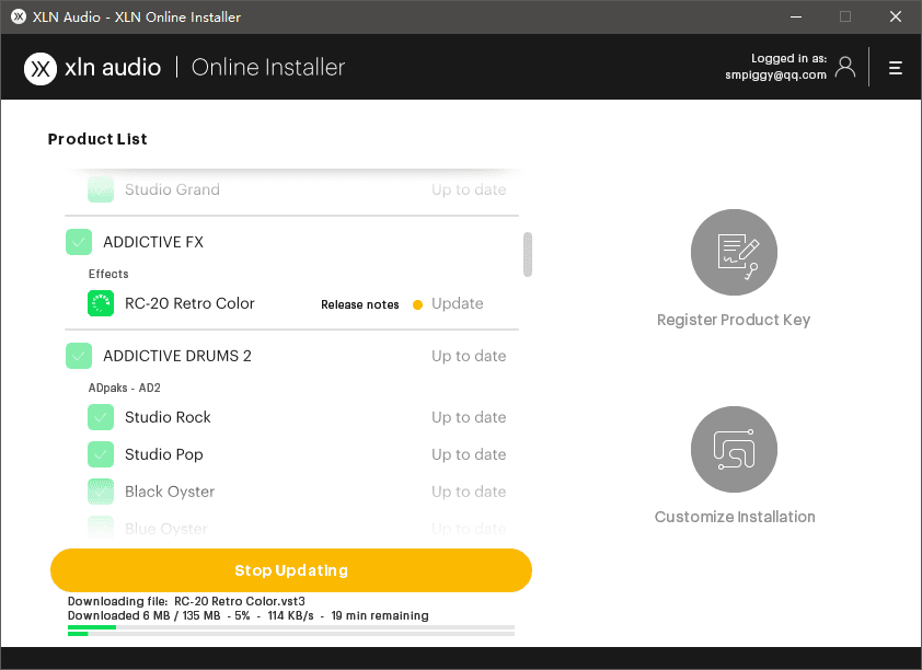 我按照 XLN Audio 所说的,打开 XLN Online Installer,找到了 RC-20 的更新。