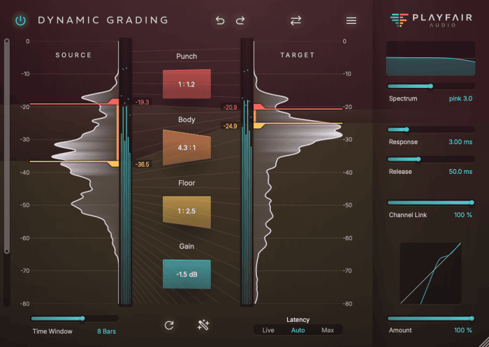 Playfair Audio 也是一家新晋的音频插件公司(和之前提到过的 NoiseWorks 一样),也是只有一款产品,但就依靠这款产品一炮而红,那就是 Dynamic Grading,动态分级。虽然我没用过这款插件,但也听说了它的盛名。这款高达 1000元人民币的插件,主要功能就是通过对音频的动态范围进行三个分区的规划:Punch、Body、Floor,然后为这三个分区重新制定不同的压缩比率,从而让音频整体的动态得到全新的控制。
