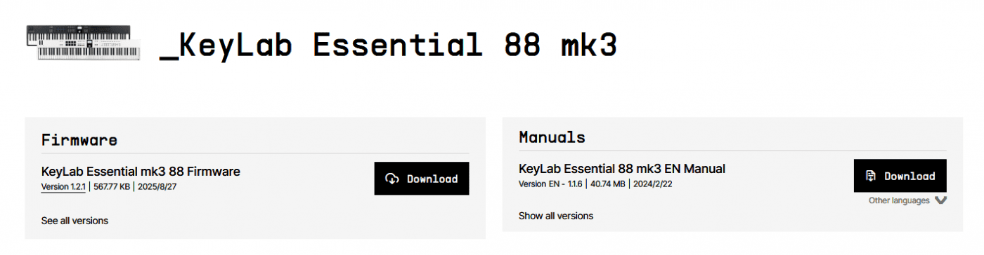 我还试着在 Arturia 官网找到了 ES 88 mk3 固件文件,但事实证明这种方式依然无效。