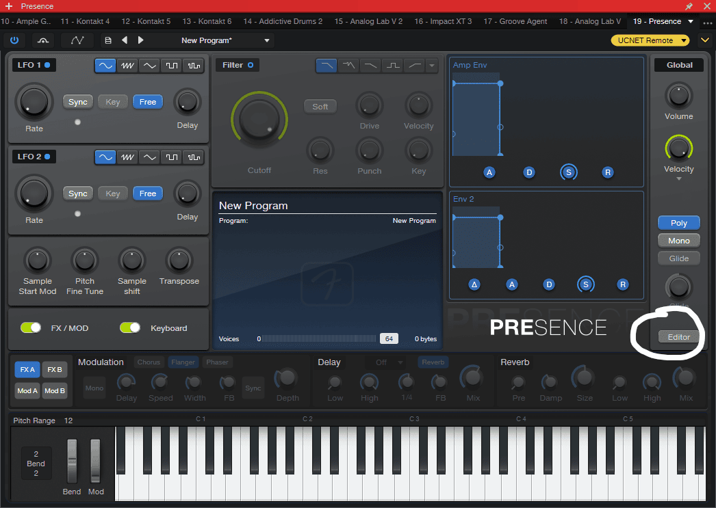 但是,FSP 还是做到了让人兴奋的事情,Presence (在 S1 中称为 Presence XT),这次恢复了阉割已久的 Editor 功能。在 S1 中,Presence 的 Editor 功能一直是作为付费的额外功能单独出售的,而且要好几百人民币我记得,我还差点就买了。大概是从 S1 7 开始,Editor 这个独立售卖的功能在 PreSonus 官网都变得无法购买(我猜想是为了放进 S1 Plus 订阅服务中,但我没有订阅过,因而只是猜测)。而现在 FSP 至少做了件好事,它开放了 Editor 功能。而 Editor 功能有什么好处呢?它可以像 Kontakt 一样,制作自己的采样音色,而且更加简便直观,还是原生的。