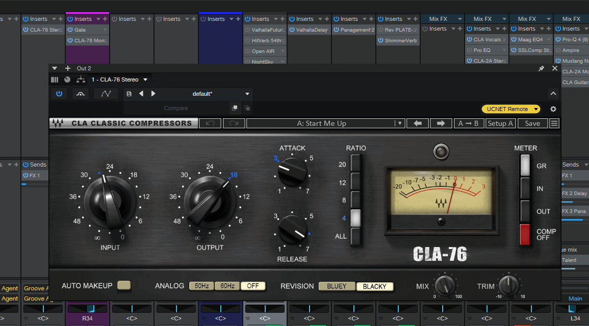 首先,我需要做的,是先测试它对 S1 7 的项目的兼容性。这是最重要的,如果它首次运行 S1 7 的项目就能完美打开,那么能让我安心不少。我选择了一个大概六成复杂度的项目,中间包括了轻度(约十几轨)的 Pro Q 4 的均衡,CLA-76 和 2A 的压缩,常见的 SSLCOMP 总线压缩,总输出上的 Masterdesk Truepeak、Tonal Balance Control,和挂在 LIsten Bus 上的 Sonarworks Reference 4。然后,我使用了轻度的虚拟乐器,包括一轨 HALion 7 中的 Electric Bass,Impact 的 Kick、Snare 这些,Kontakt 8 的 LASS 弦乐、小号、钢琴,一台 Lizard EP-4 电钢琴,一把 Ample Guitar Martin,几个合成器包括 Analog Lab、Omnisphere 等音色轨,外加几轨实录的人声和电吉他轨。总的轨道数大概 50 条左右,算是轻度项目。