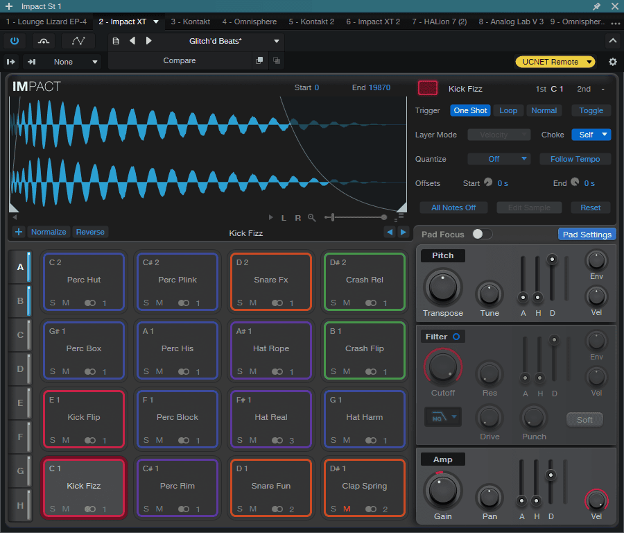而像 Impact、SampleOne,这两款以采样为主乐器,都新增了 Fade 曲线。这使得我们可以对采样切片做更细致的过渡,而不再会出现波形直流偏移后出现的爆音了。