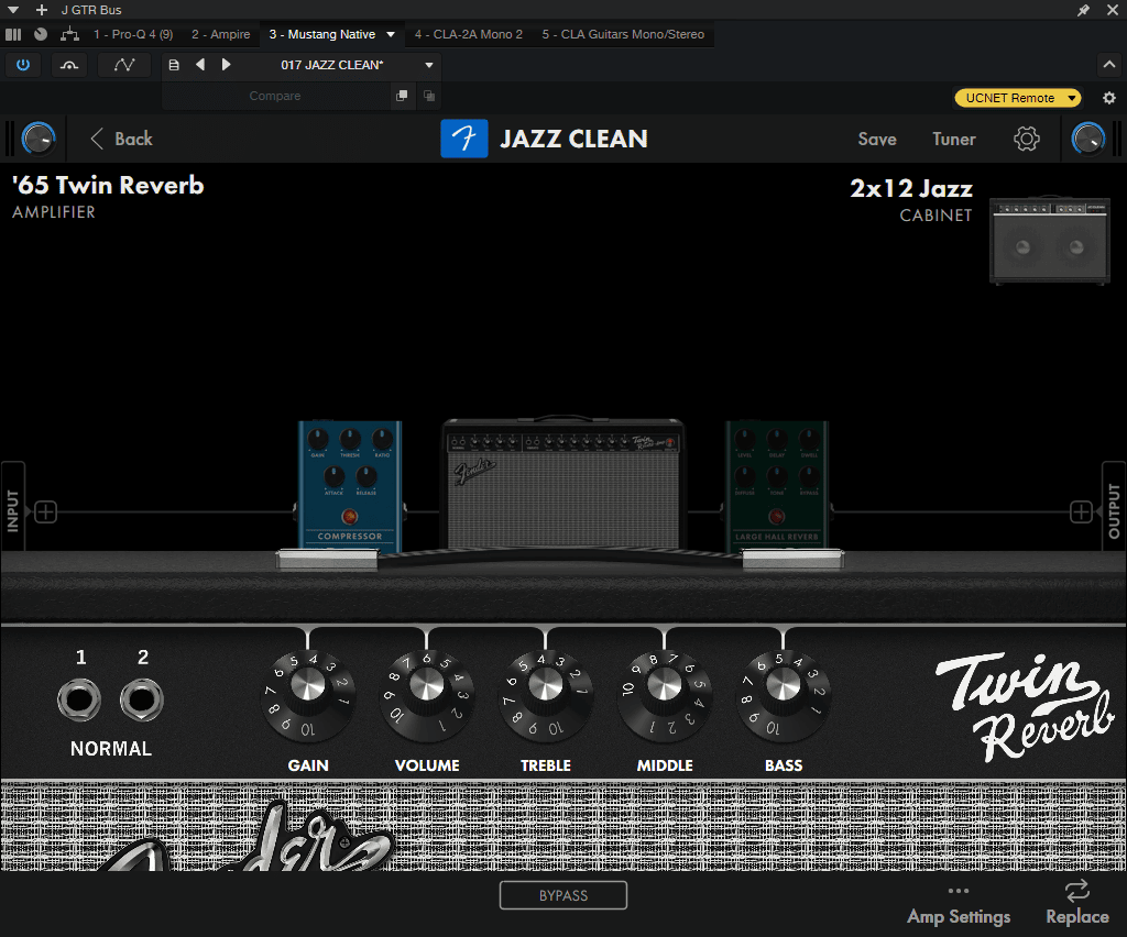我在这个轻度项目中,刚好使用了爵士清音吉他,我便为它插上了 Mustang,音色非常漂亮和温暖。我并非一个吉他手,所以我很难将 Mustang 的音色和其他品牌进行准确的对比,但拿它和 S1 之前的 Ampire 对比,那真的是一个天上一个地下。
