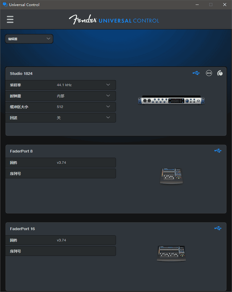 除了 Fender 对 S1 本身包括名称、功能上的一些改变,Fender 还更改了 PreSonus 其他产品的相应周边。比如 PreSonus 之前对硬件产品进行统一管理的 Universal Control,现在成为了 Fender Universal Control。
