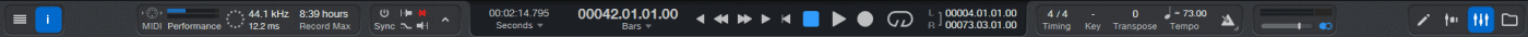 主界面中还有一个最大的变化,是 Inspector 的显示按钮,从上方移到了界面的左下方。这一点一开始令我很不适应,但后面逐渐接受并适应了。而原来 Inspector 按钮的地方,被新增了两个功能按钮,即显示事件信息,和显示轨道推子。我个人觉得这倒是真的有点用处,有时候我们需要快速从左侧进行事件条的编辑,比如临时移调等,我们需要将事件条的信息栏,从轨道信息栏和轨道推子栏中拽上拽下,拖出空间来进行操作。而现在有了两个功能按钮,能减轻不少这种拖拽的痛苦。