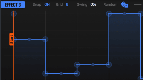 音高吸附模式同样支持曲线随机化下使用, 让你的确保音乐性的前提下获得数不尽的灵感.