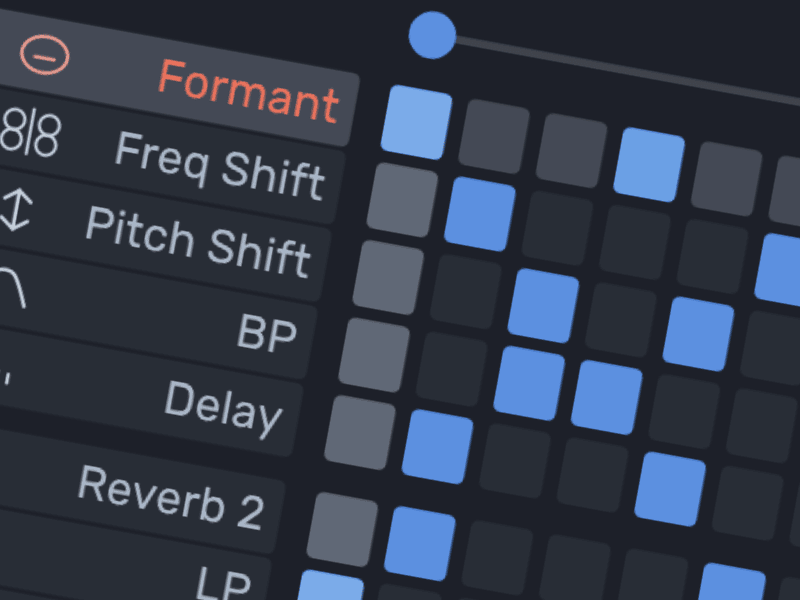 每个效果器都有两个速度同步的多段包络,用于调制键盘参数。生成随机 pattern、欧几里得节奏、应用摇摆和音高吸附。