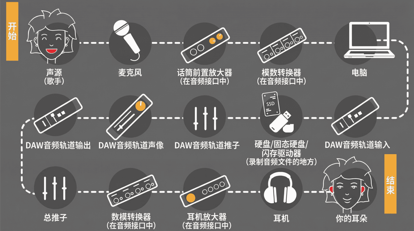 那么我们就来看看,在音频世界中,一个信号到底会经历哪些奇妙的旅行,最后传递到人们的耳中吧。