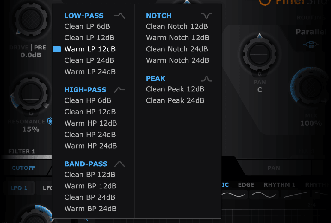 选择厚实且驱动的暖滤波器,其灵感来自传奇半模块化合成器的 Sallen-Key 滤波器。需要现代精度?选择我们清晰的清洁过滤器。
