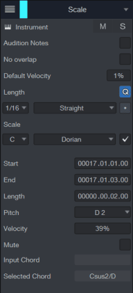 - Velo:输入或拖动设置 MIDI 力度。